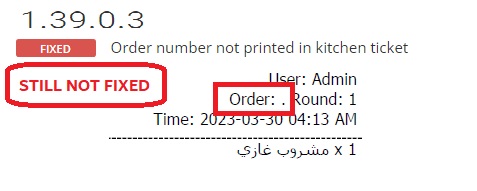 order number NOT fixed after updating 1.39.0.3
