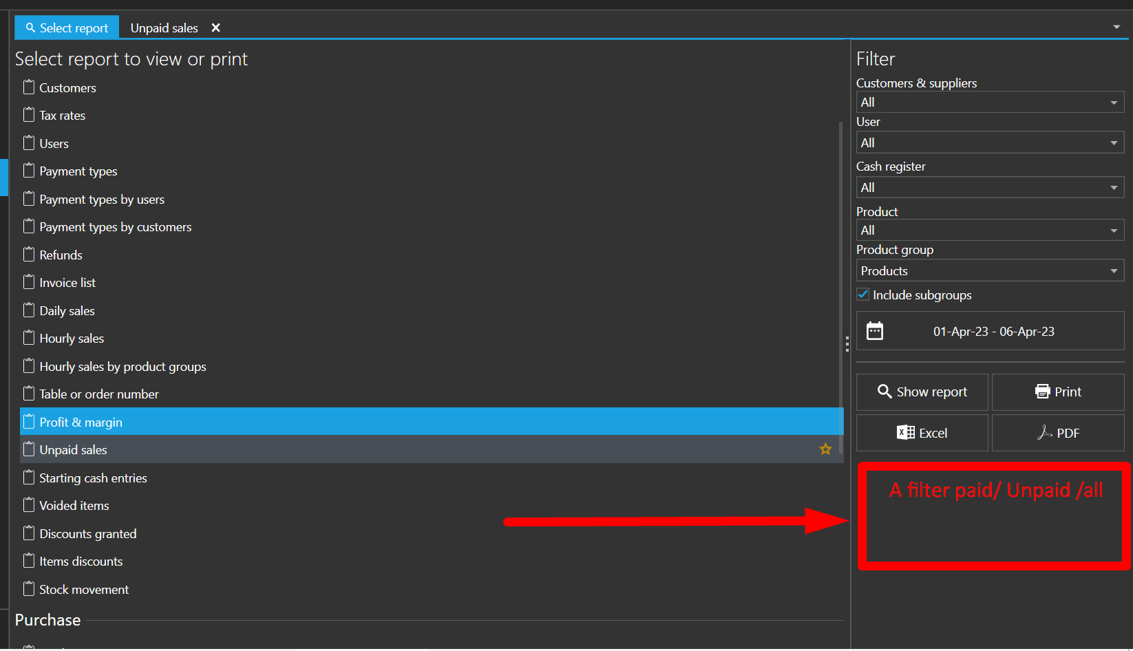for paid only we can see only paid data. the unpaid sales report is available but it is not showing product-wise data as Profit & Margin report shows.