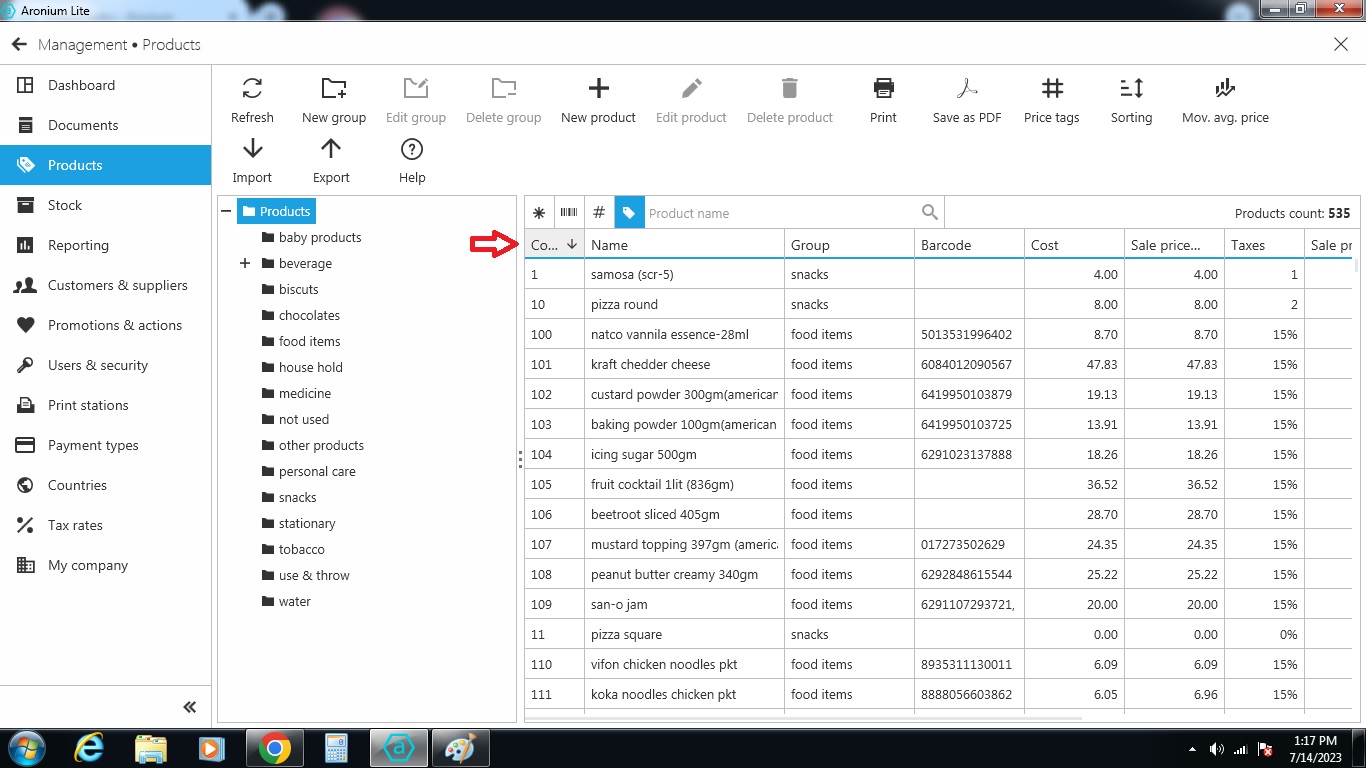 We assume you would expect codes to be sorted as "1,2,3,...", but, unfortunately, product code is an alfa-numeric value, so the sorting is done this way. Basically, it is sorting text, not numbers as you would expect.