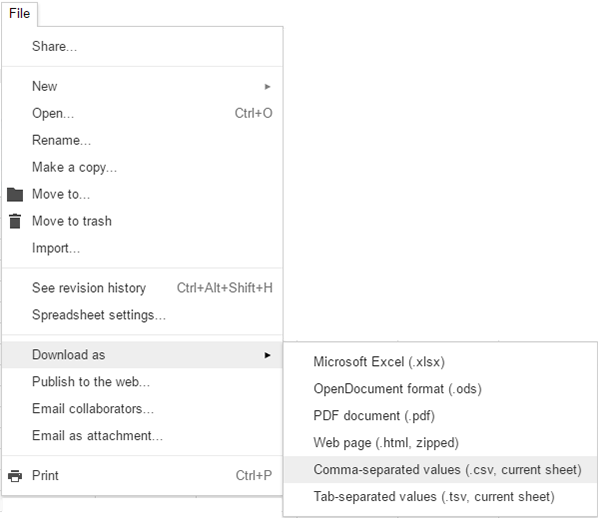 If you are having troubles with Excel and you don't know how to create a CSV file from it, you may want to try using Google Sheets. Open an existing Excel in Google Sheets and you will be able to export to CSV as in the screenshot below.
