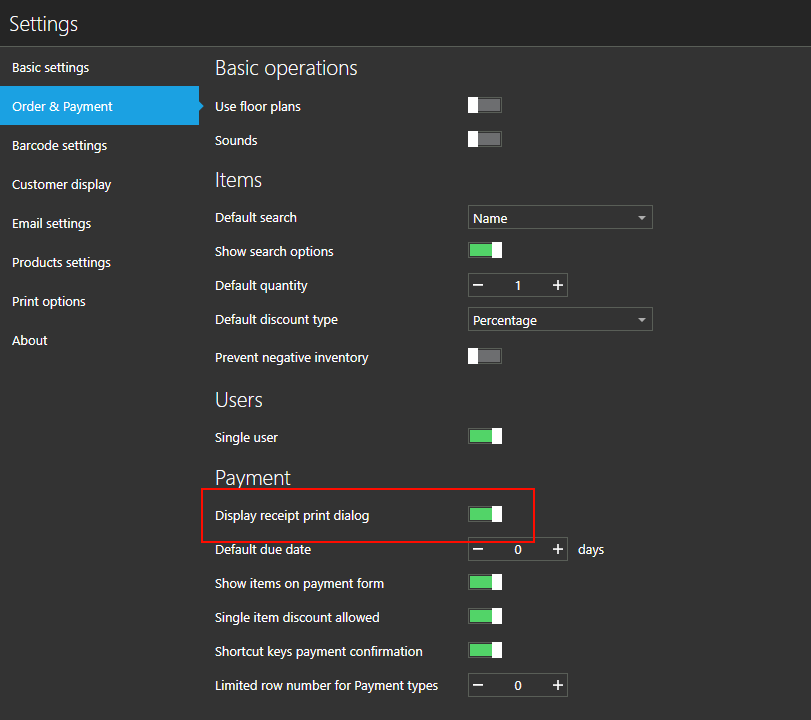Go to Settings > Order and Payment and make sure you have "Display receipt print dialog" option turned on, as in the screenshot below, it will show a screen after the sale is closed and you can choose if you wish to print receipt or no.