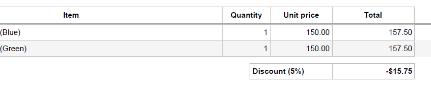 Ideally total should have been 150 for each line item and 5% discount should have been 15 and not 15.75