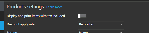 1. Display and print items included TAX has been set to off