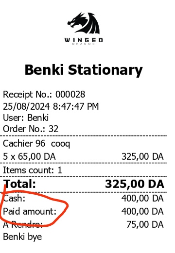 How to remove "Cash" Or "Paid Amount" from receipt ? Follow Benki Services August 26, 2024 06:42 Edited I want to remove either one of those because only one is necessary to me can you tell me how to do it ? Thank you in advance 0