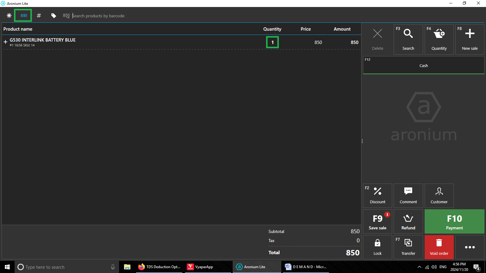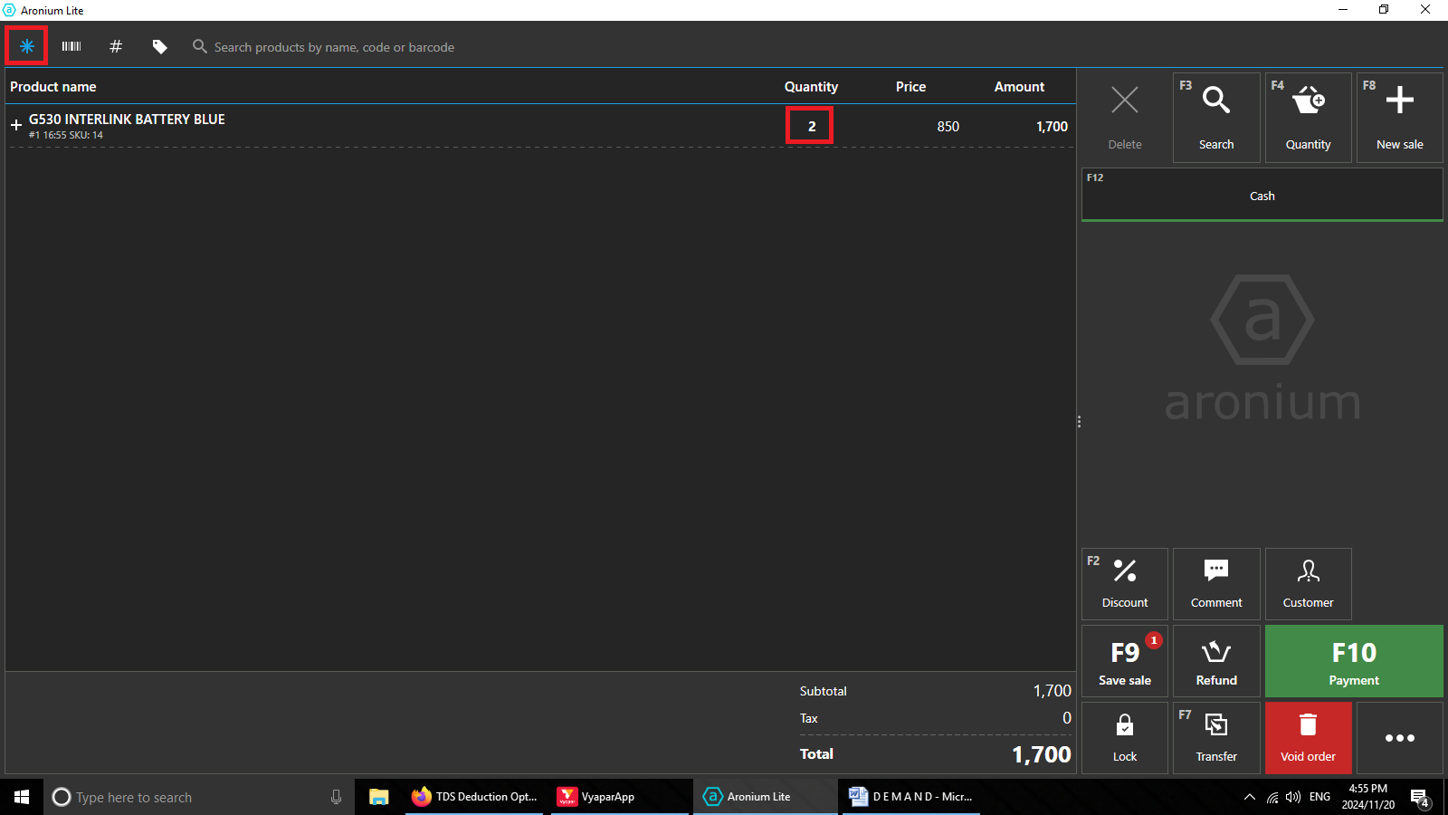 Barecode reader - on each scan add 2 quantity