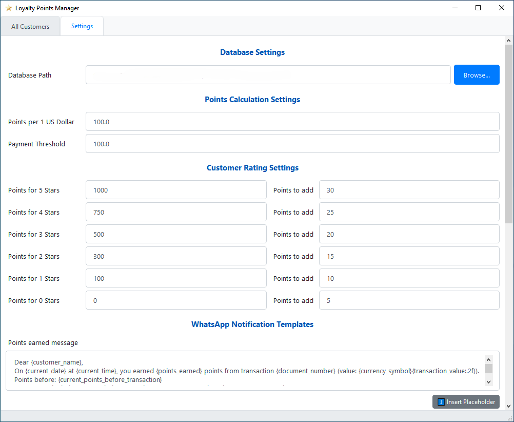 If these fields are left blank, the core loyalty points features will still work, but you will not be able to receive any WhatsApp notification for that customer.