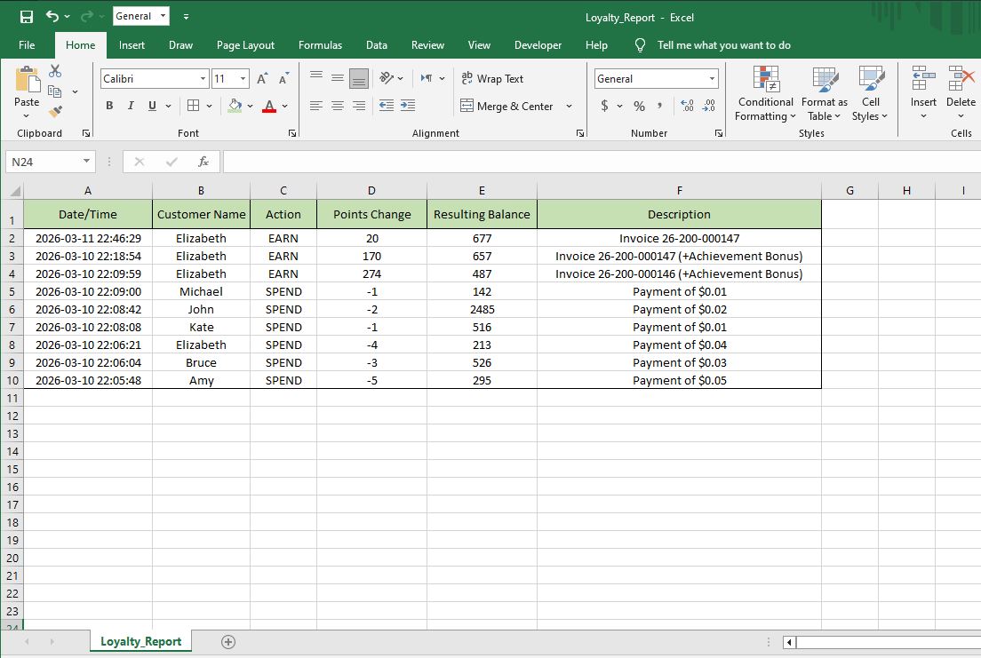 This is the main part of the tab, listing your loyalty program members. Each row represents a single customer, and the columns display specific details: