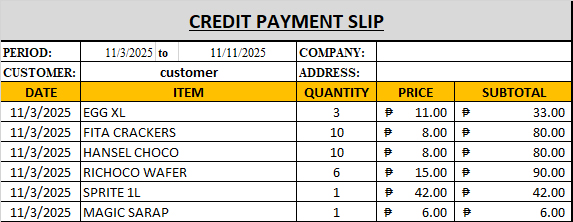 I love using your software, it is a great help in my small business and I know that you are improving its features from time to time. When using it, I thought of a feature that I really need which is not in your software so I wanted to request that feature. As a brief history, some of my customers do credit payments, although there is a record of the total credits for a certain customer but I can't see in the reports the items that are in credit so I need to make a list of items that a certain customer paid using credit payment with respect to the date in an excel software. I just want to have a report on the total credits of a certain customer, with each date of transaction plus the name of the items and the quantity. This will be a great help if you can add this feature on your next update. Thank you and Godbless. I have here an image of what I did in excel software when someone do credit payment.