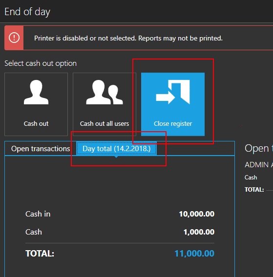 So, please, in this screen you've sent, switch to "Close register / Day total" and you will see your cash in amounts.