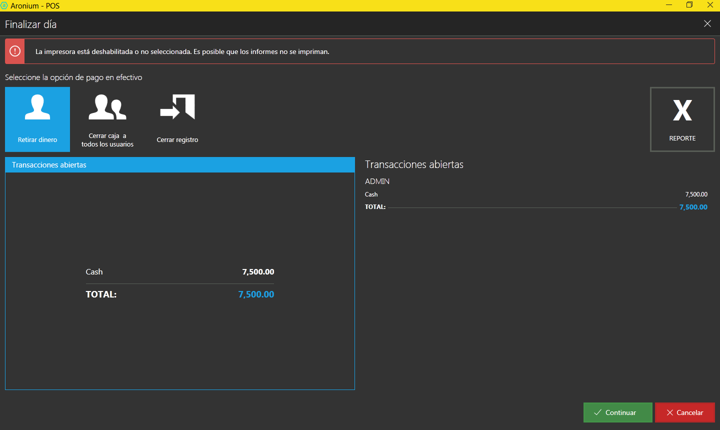AnsweredI'm noticing that the cash report is wrong, if at the beginning of the day, an income of money is made in this case $ 10,000 and then I have sales for $ 7500 when making the withdrawal of the user's money the total cash is $ 17,500 the closing of the user only shows the total sales in cash in this case $ 7500 attached images