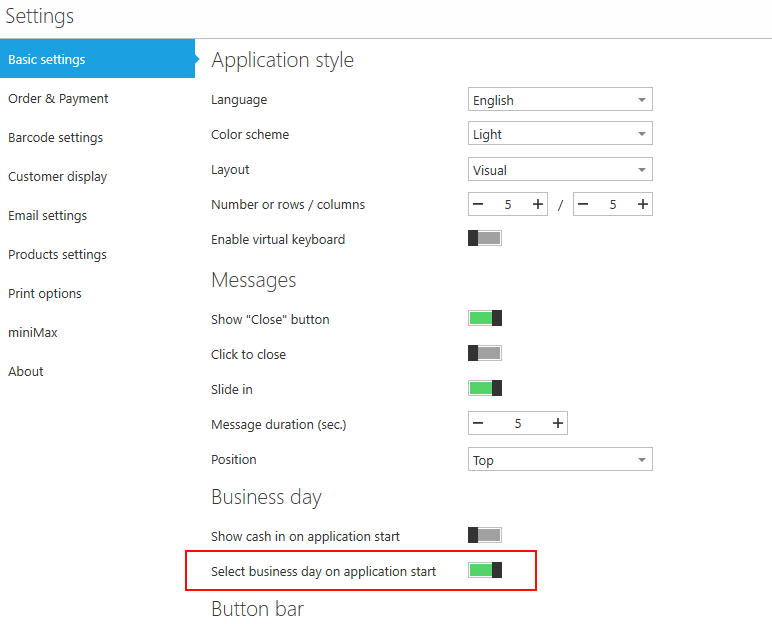With this option enabled, you will be prompt to select a business day on application start(calendar date doesn't matter anymore).