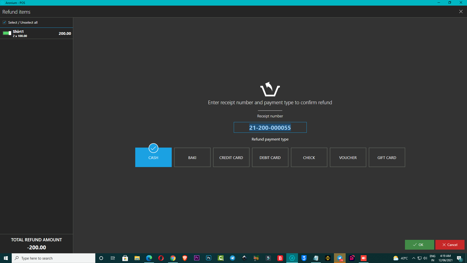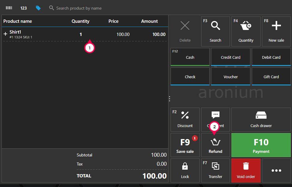 1. In regular sale screen, add 1 piece of "Shirt1" product (like you are about to sell it)