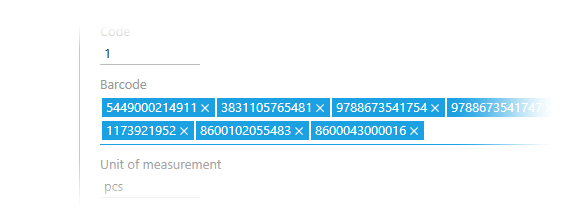 If you have product with multiple barcodes, you can set as many barcodes as you like for a single item, as described at https://help.aronium.com/hc/en-us/articles/209345969-Manage-products