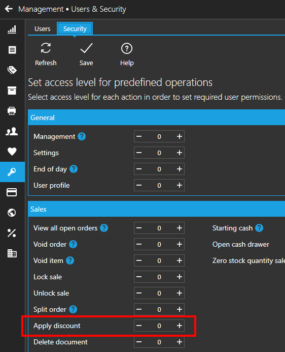 Actually, you can control who can apply discounts already using access levels. You can set required access level for discounts, and, this way, only a manager (user with required access level) will be able to apply discounts manually. You can find more info at https://help.aronium.com/hc/en-us/articles/115001375609-Setting-up-access-level.