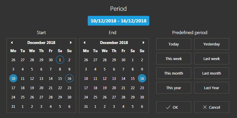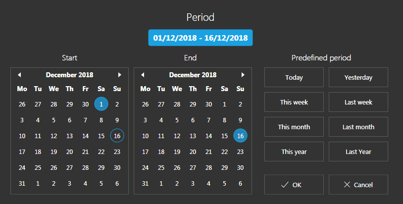 - If you click on a date, and then click on a "Predefined period" the date you clicked on is left with a blue circle around it.