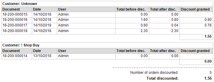 "Discounts granted" report: