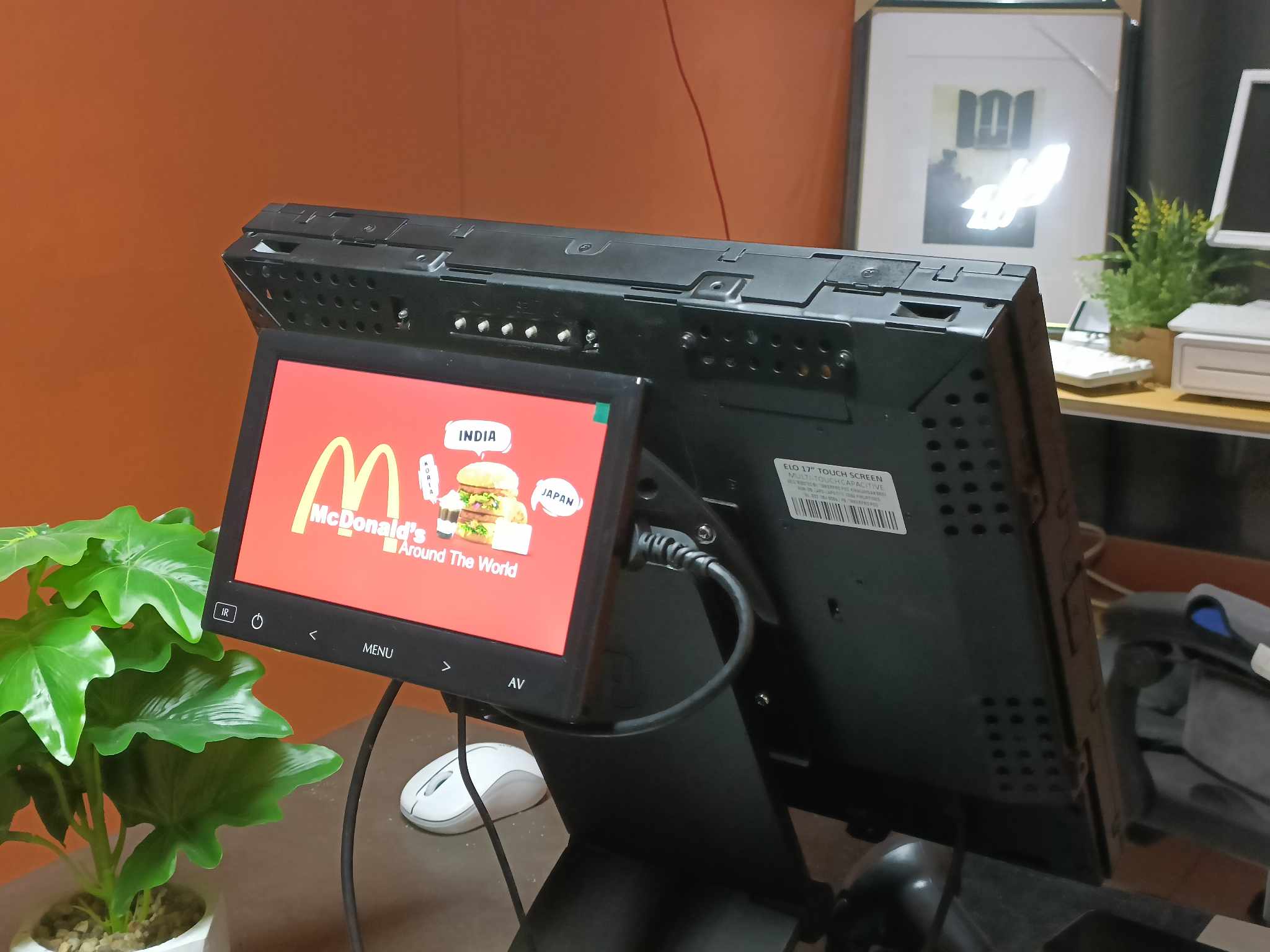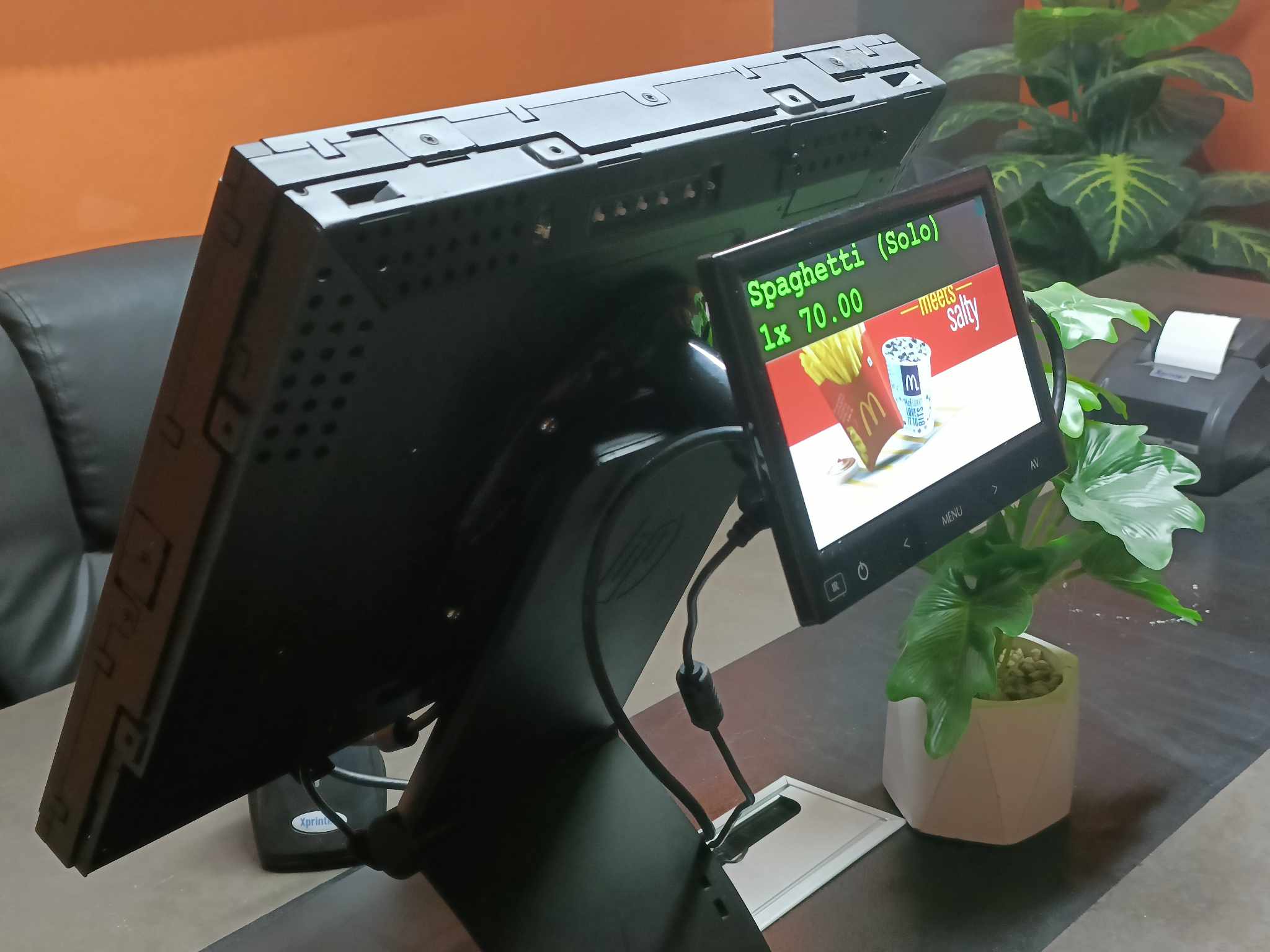 I see alot of companies manufacturing POS systems with 2x screens these days. One in front for the terminal and one directly mounted at the back which is used for the customer. These are both normal computer LCD screens.
