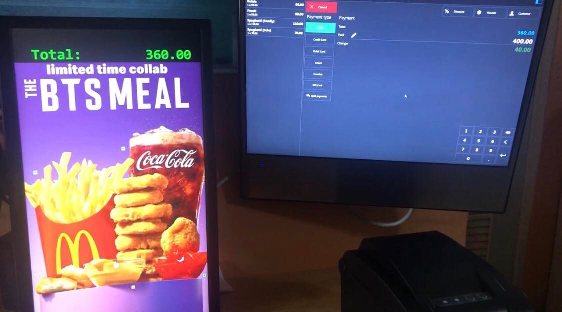 Best feature is, fully customizable, the VFD price display only appears when there is order. After tendering, it can be set to auto disapear or to stay. Can also be positioned top, bottom, center and colors can be changed as well.