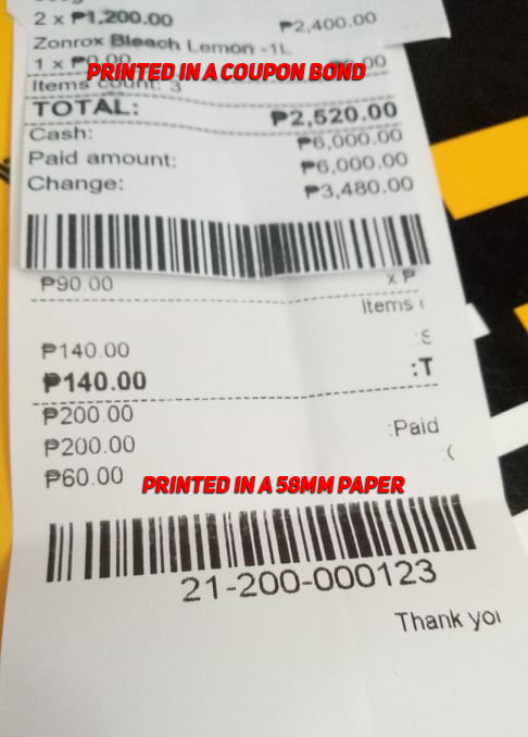 AnsweredHi, I am using Xprinter XP-58IIH Thermal Printer as my Receipt printer. I have some issues with the receipt output (The image below shows the sides are cut, even when the margin is zero). I tried adjusting font size and the margins yet it always cut on the sides. I'm wondering how could I fix the problem? Thank you so much.