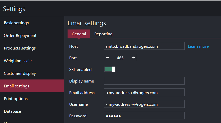 I cant seem to make my rogers email setting working in the application i confirmed with rogers i had the right port and smtp and ssl enabled any info you can provide would be great. Below is info they provided for me