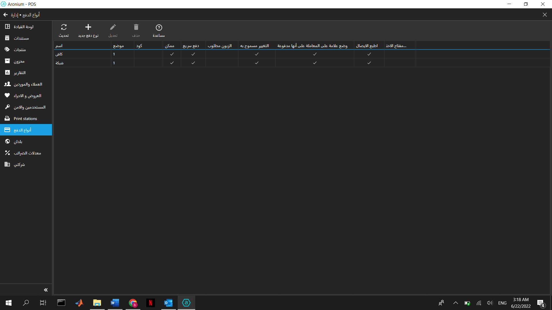 As replied on your support ticket, payment methods are available in the Payment screen that you can access by pressing F10 - Payment button (green one), as described at https://help.aronium.com/hc/en-us/articles/209524645-Payment.